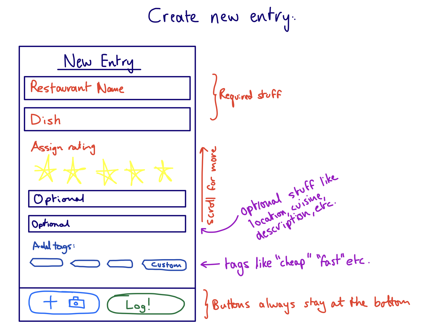 People don’t have a place to reflect on their food adventures. Whether it’s trying a new cuisine or looking into new restaurants, it is useful for people to have a place to record their restaurant experiences. In our research, we found that there is no app designed for people to journal their food related experiences and we feel that this app will offer a new and exciting avenue for people to enjoy and reflect on their meals.